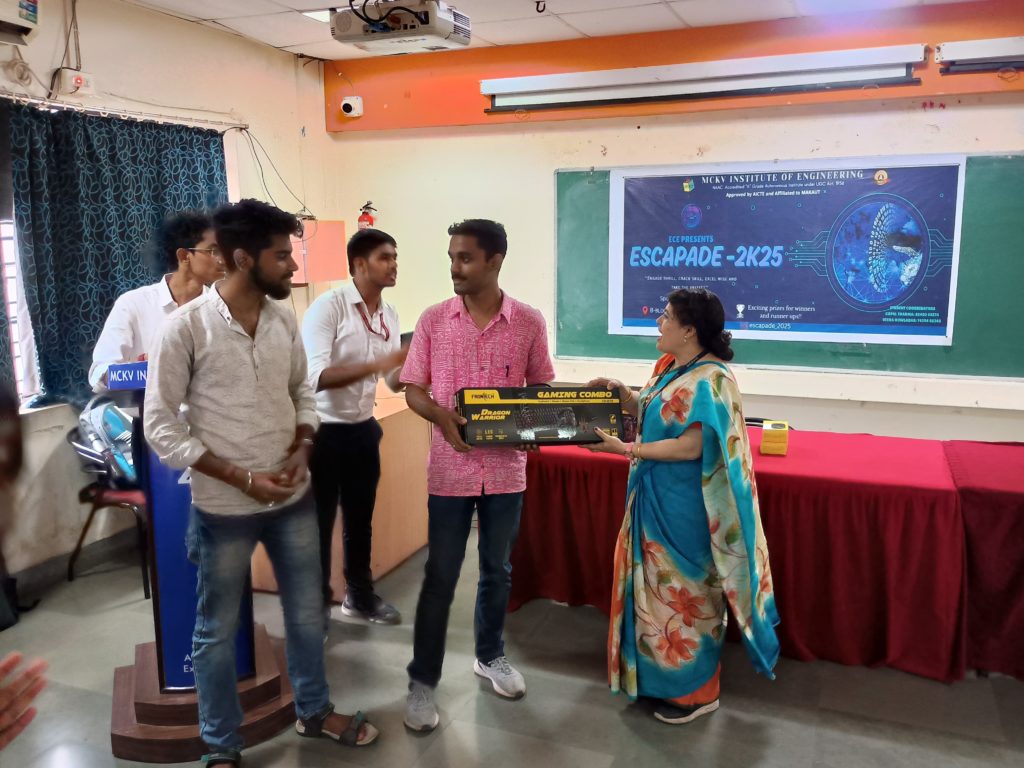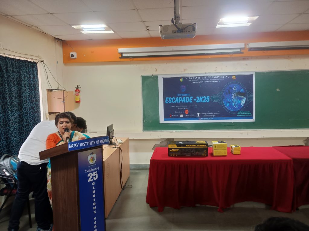 A Student Competition Event (ESCAPADE-2K25) had been organized by ECE Department on 4th April 2025. There were 58 student participants from ECE Department and 113 from all other departments of 2nd, 4th and 6th semester. There were total 3 rounds in the competition. Name of the rounds are: 1. Logic League, 2. Audio visual quest 3. The lost key.
